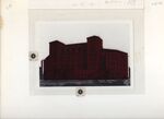 This is a picture with a red printing overlay on cardboard. The setup of the picture appears to be in the processing of being editing for publication purposes. There is an official Post Card of Hermann Hospital that shares the same perspective as the photo with this overlay, and this could be the publication/editing process of that Post Card.