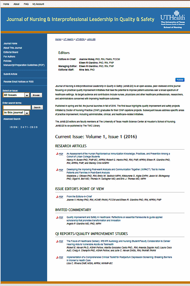 - Journal of Nursing and Interprofessional Leadership in Quality and Safety